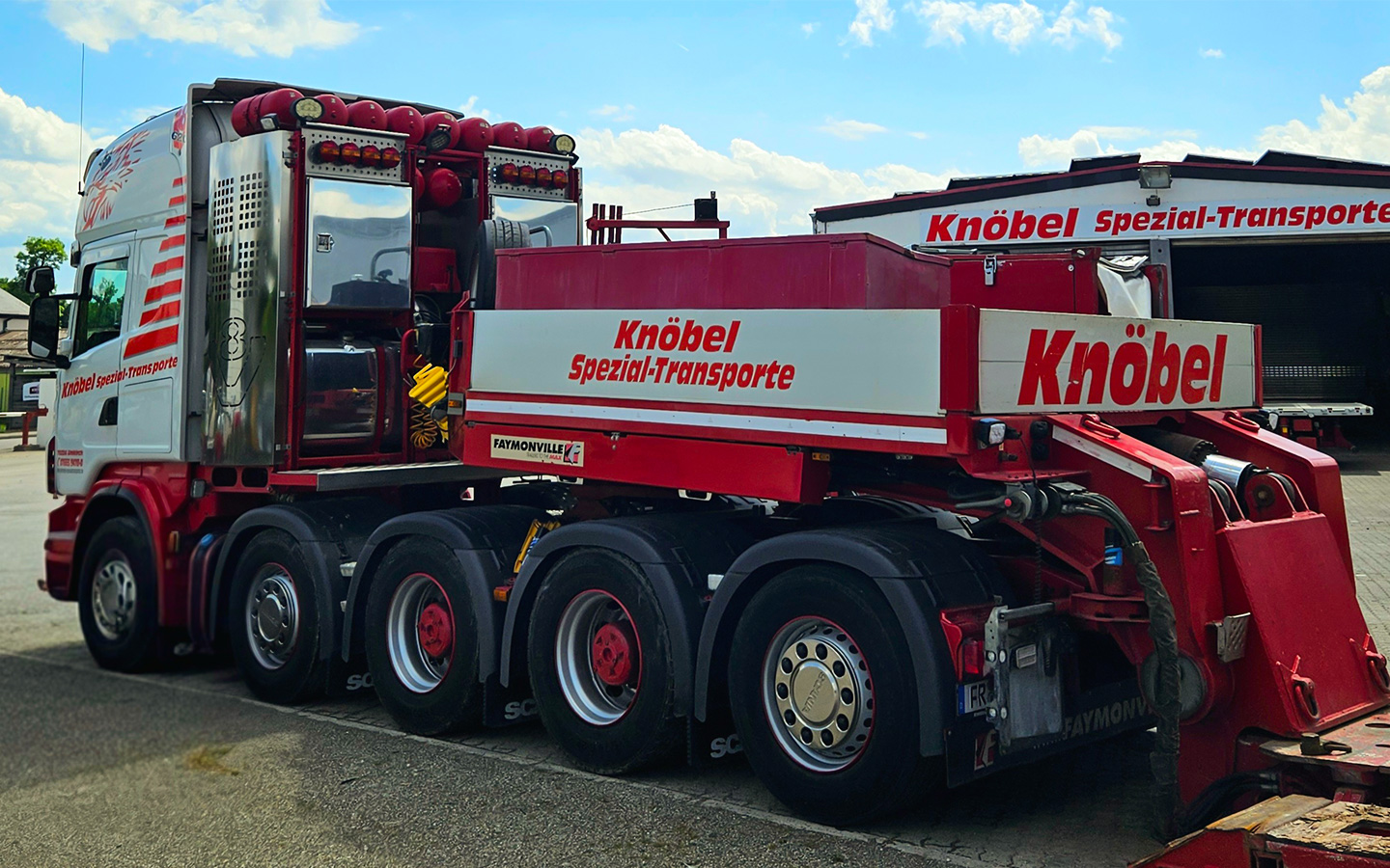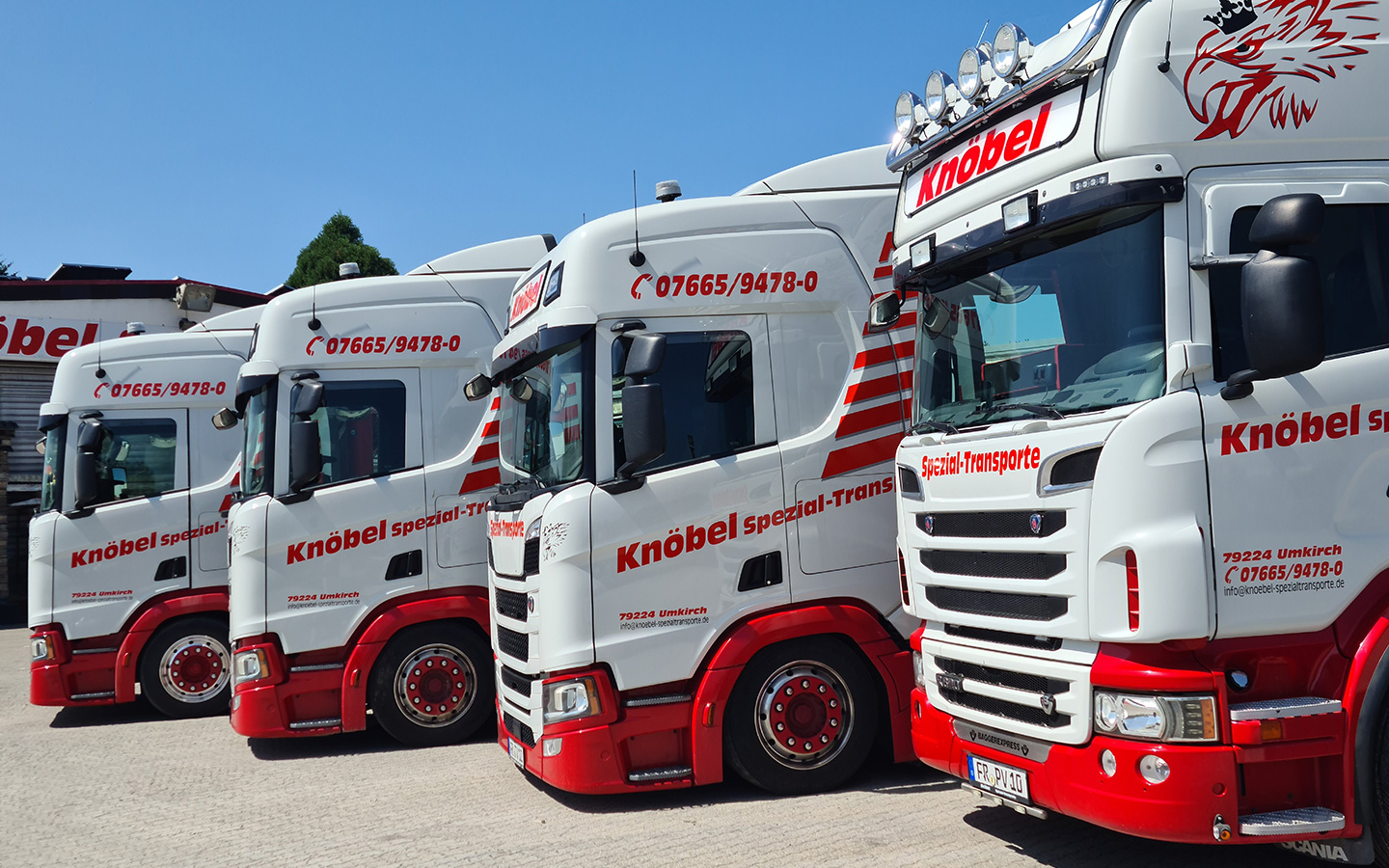 Der Fuhrpark von Knöbel Spezial-Transporte bietet auf den Bedarf zugeschnittene Fahrzeugeinheiten zum Transport von Landmaschinen, Industriegütern, Baumschienen, Stahlkonstruktionen, Maschinenteile, Raumzellen, Containern, Behälter, Betonfertigteile, Maschinen und vielem mehr. Damit ermöglichen wir eine maximal mögliche Ausnutzung von Ladehöhen und -breiten.