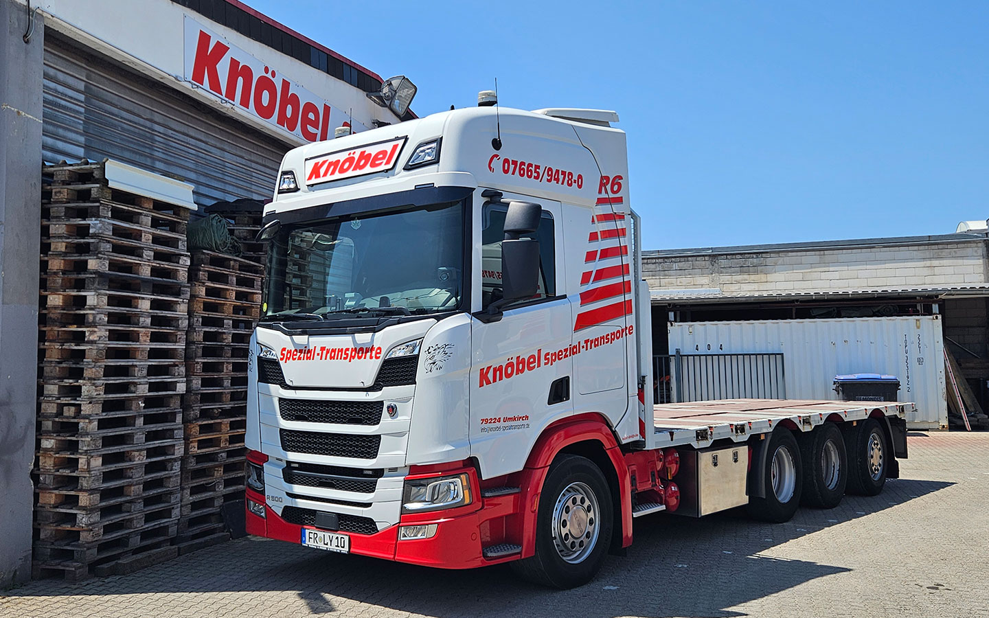 - Besonderheiten: Pritsche, Garagenträger ausziehbar bis 3,65 m, Containerverriegelung, Auffahrrampen