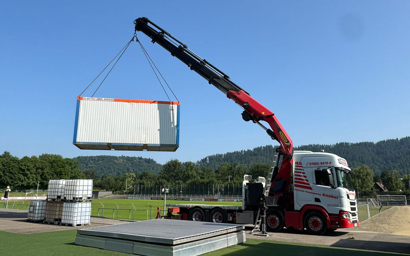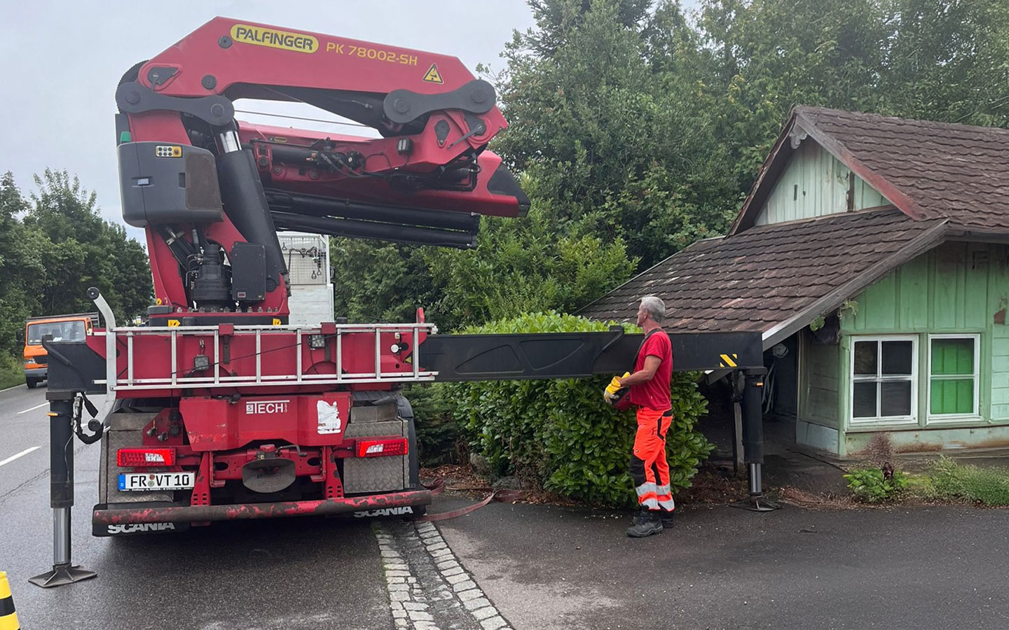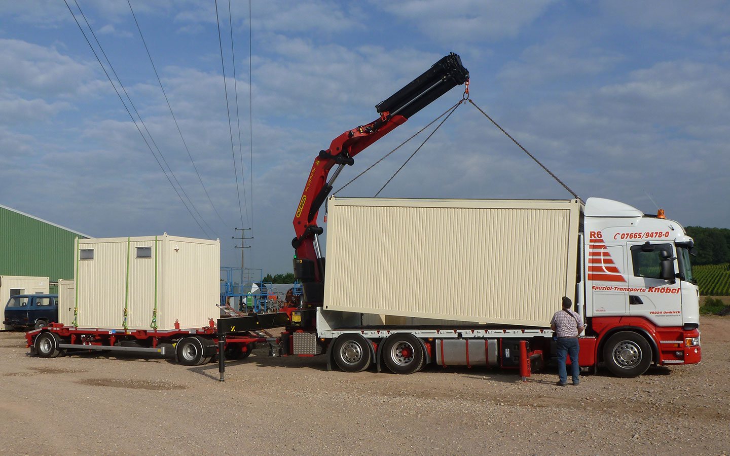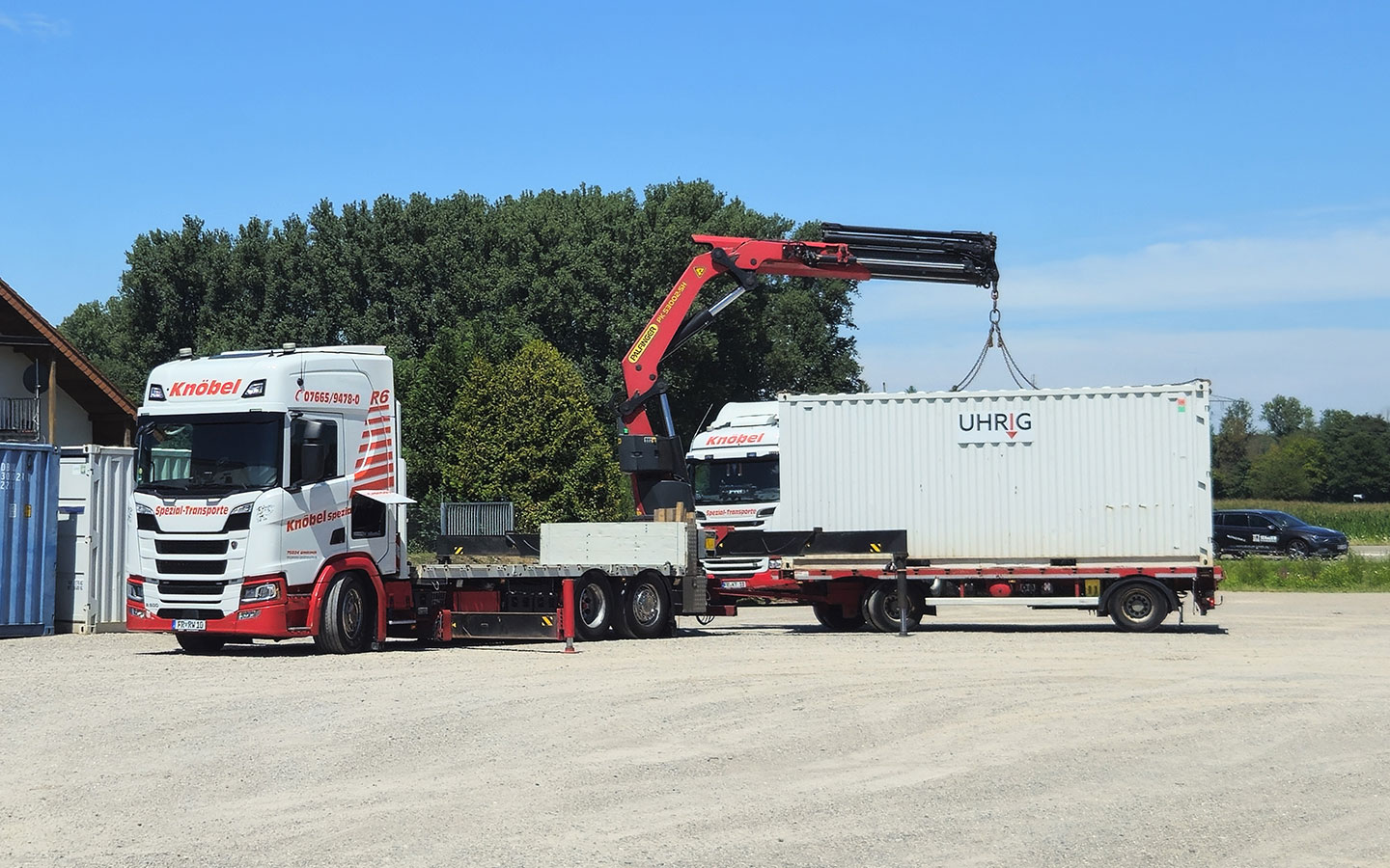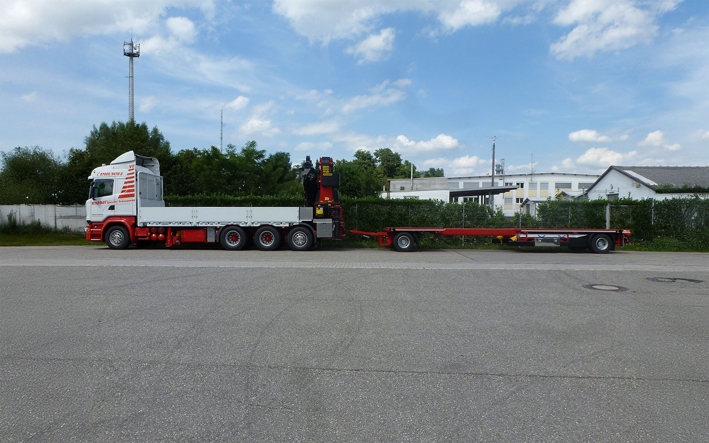 Mit unseren modernen Kranwagen mit Ladekran sind wir in der Lage, Kranarbeiten bis 20 m Hubhöhe und 25 m Ausladung durchzuführen. Ebenso sind unsere Kranwagen auch jeweils mit Anhängern ausgerüstet, so dass wir Ihnen auch den Transport, sowie die Kranentladung aus einer Hand offerieren können. So setzten wir z.B. Container sowie komplette Baustelleneinrichtungen für Sie um. Wahlweise bringen wir Ihnen auch den passenden Anhänger mit oder ohne Auffahrrampen mit. Unsere langjährigen Mitarbeiter sorgen dafür, dass Ihre Ware durch unseren Ladekran sicher an Ihrem Bestimmungsort ankommt. Unsere LKWs mit Ladekran sind u.a. ausgestattet mit Garagenträger ausziehbar bis 3,65m am Anhänger, Containerverriegelung, Auffahrrampen, Rungen und Radmulden. Wir haben insgesamt 9 Kranwagen im Einsatz und würden gerne Ihre nächste Kranarbeit für Sie auszuführen. Wir freuen uns auf Ihre Anfrage.