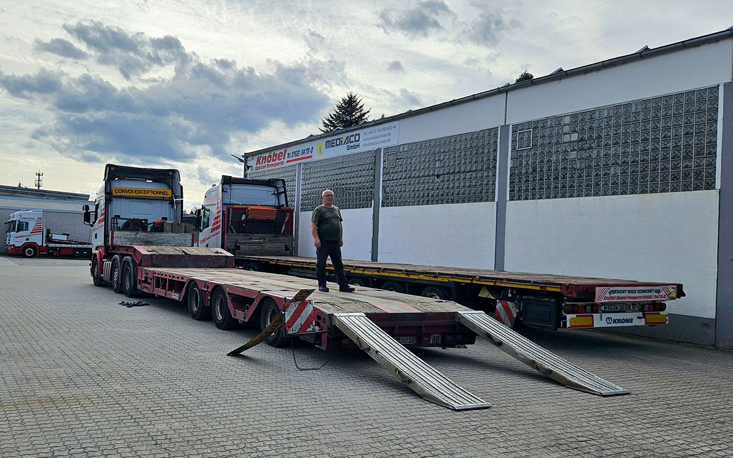 Unsere Semi Tieflader sind für die unterschiedlichsten Sondertransporte und Spezialtransporte ausgestattet, egal ob Bagger, Forstmaschine, Radlader oder Schlepper, fast jede Baumaschinen können wir für Sie transportieren. Die Semi Tieflader verfügen alle über mobile 2,5m Alu – Auffahrrampen, sind verbreiterbar bis zu 3,25m, haben gekröpfte Schwanenhälse und verfügen teilweise über Rad – und Stielmulden. Des Weiteren können wir mit unseren Semi Tiefladern Gewichte bis zu 35 Tonnen transportieren.